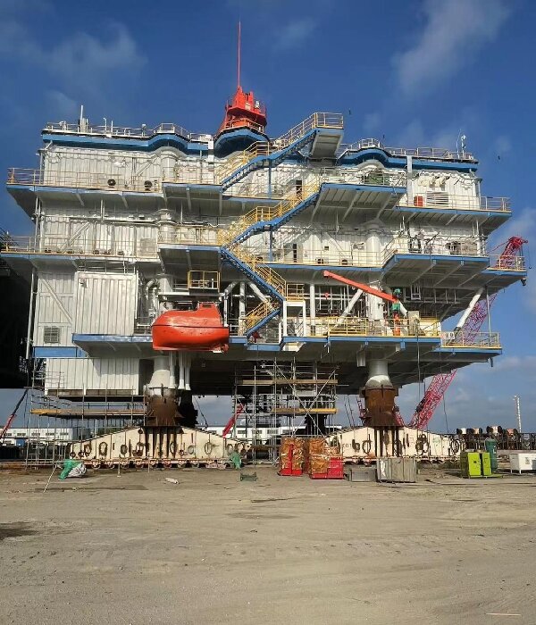 山东能源渤中海上风电 G 场址(南区)工程,由中国电建集团中南勘测设计研究院有限公司承建,其中海上升压站的建设由我司通过竞争性谈判由我司中标,于2023年10月开始施工建设。